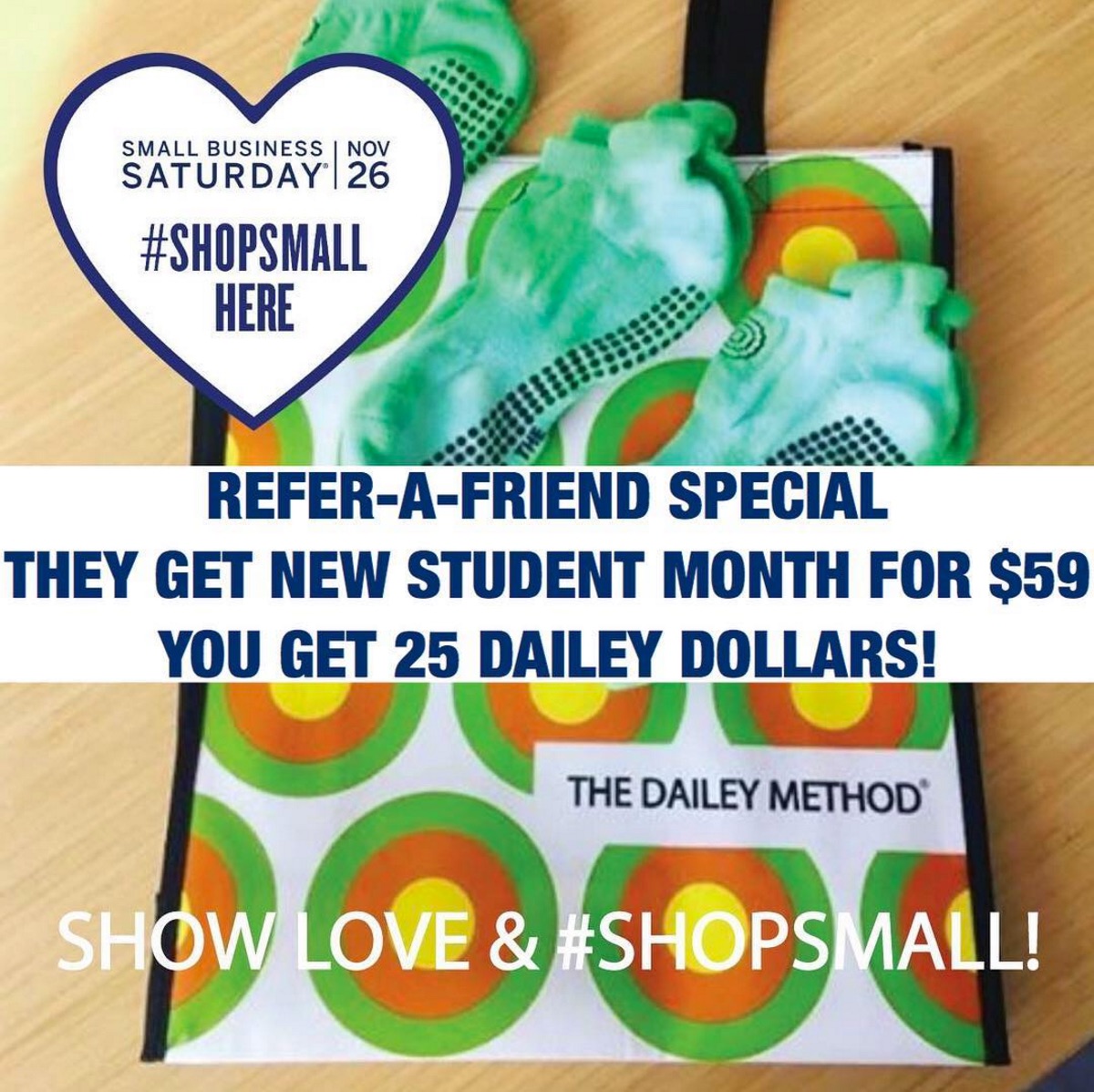 @thedaileymethodnapa It’s Small Business Saturday! Get $25 account credit when you refer a friend! Send your friend this link: http://bit.ly/1jlW8a1 & then have them tell us you’re their Barre Buddy! #shopsmall #doitdailey #burnmerryandbright
