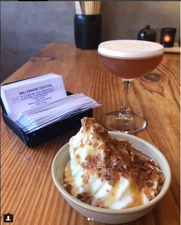 @chefmiminashi CORN EXTRAVAGANZA Aka Monday @ Miminashi Sweet corn soft cream with whiskey butterscotch, wafer crispies + maldon salt along with a bourbon based “millionaire cocktail” off our cocktail rolodex @andsal9