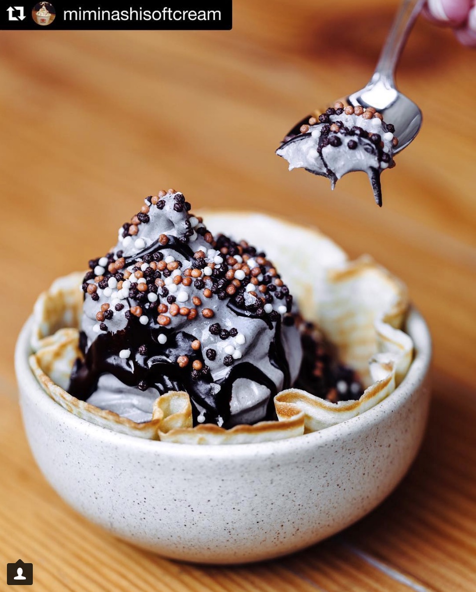 ❗️PSA: BLACK SESAME SOFT CREAM IS BACK AND IT’S 78 AND SUNNY❗️Pictured combo is THE BOMB: Black sesame with crispy chocolate pearls, hot fudge + maldon salt We also have nutella, vanilla and cucumber-yuzu-ginger sorbet (dairy-free & vegan!) so come hang in the sun with a treat